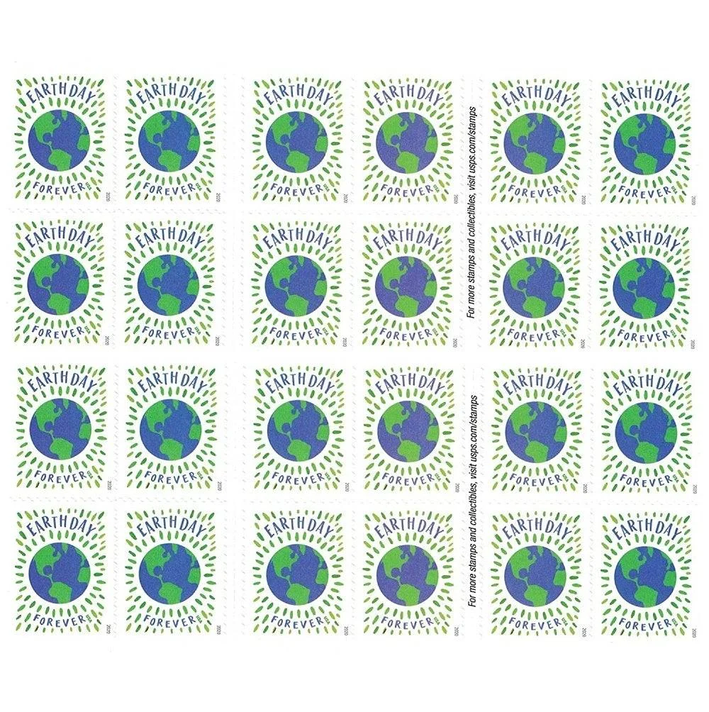 The 2020 Earth Day Forever® Stamps celebrate the 50th anniversary of Earth Day with a series of vibrant illustrations. These are a favorite for those seeking official USPS stamps with themes of nature and sustainability. Perfect for environmental organizations, educational mailings, and community newsletters looking to convey a message of conservation.