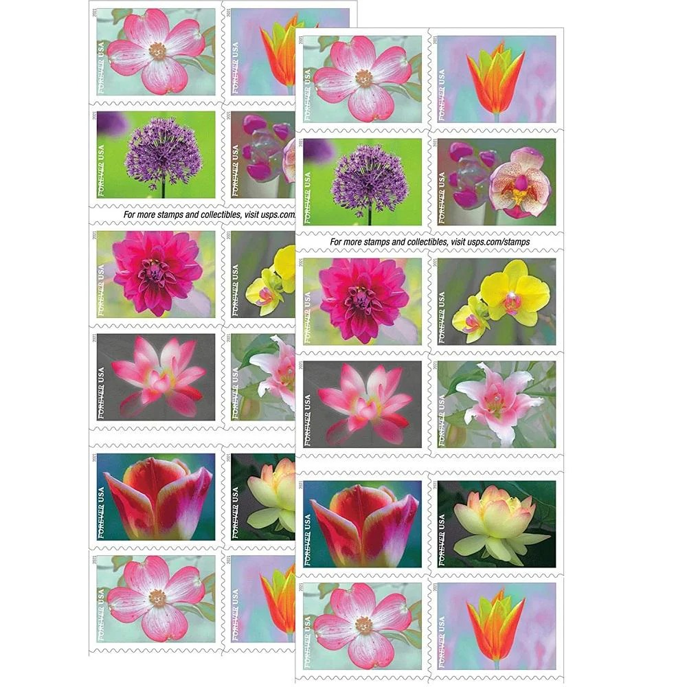 The 2021 Garden Beauty Forever Stamps feature ten stunning floral photographs that bring elegance to every piece of mail. They are the premier choice for premium Forever stamps needed for wedding stationery, high-end boutique billing, and professional marketing campaigns. These floral designs ensure your commercial mail stands out with a refined, high-quality appearance.