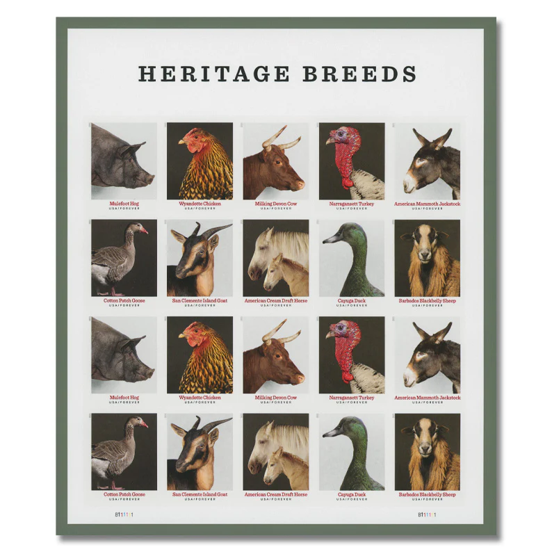 Heritage Breeds 2021 USPS Forever Stamps highlight traditional livestock breeds, ideal for agricultural correspondence, collectors, and daily mail.